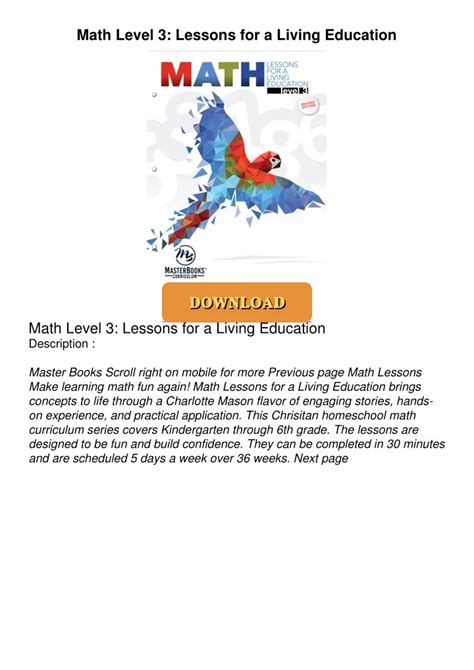 Download Math Level 3: Lessons for a Living Education Library Binding